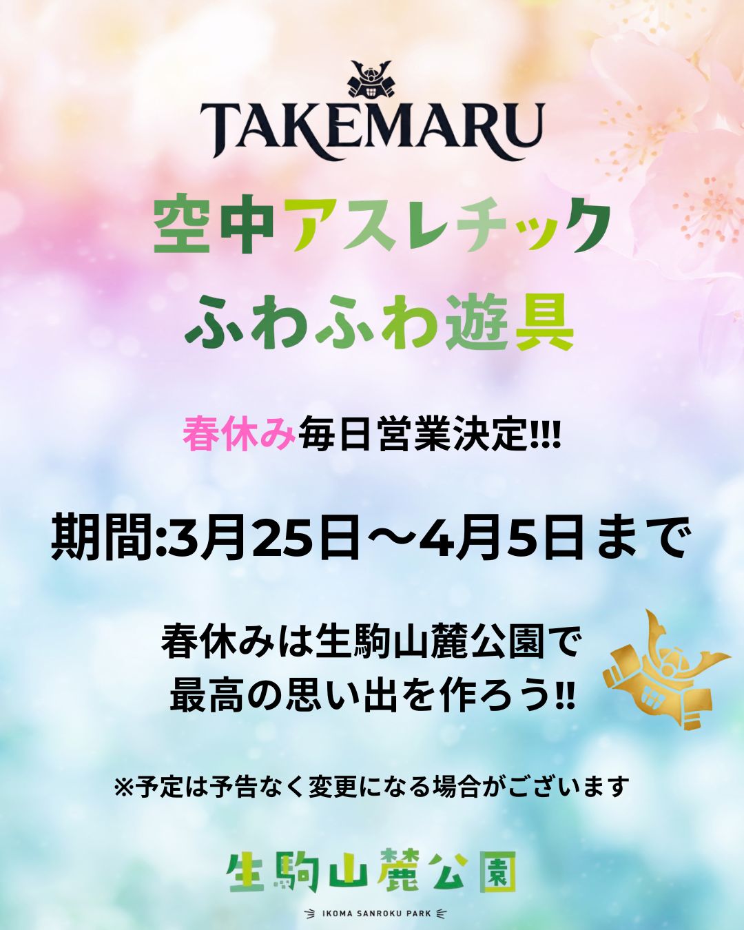 🗓 春の毎日営業期間:3月25日(水)〜4月5日(日)