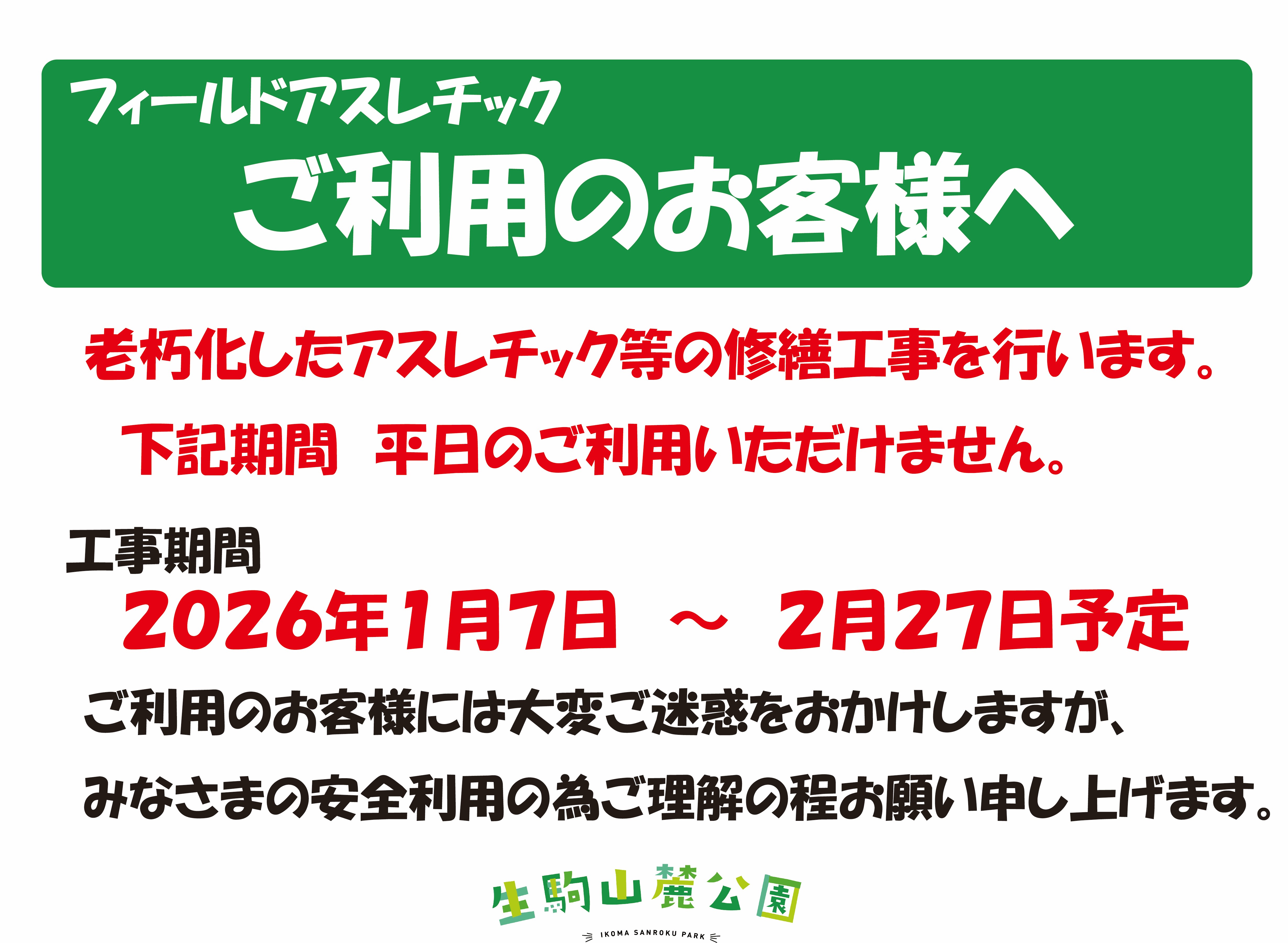 いつも生駒山麓公園をご利用いただき、誠にありがとうございます。