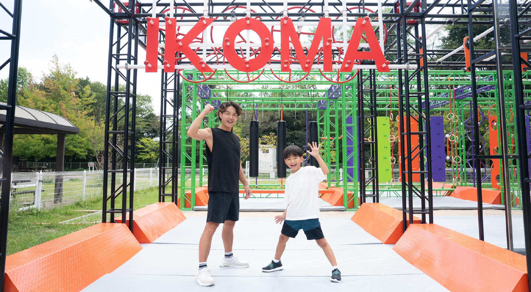 生駒山麓公園の広大な自然の中に、性格の異なる3つのアスレチックが登場。